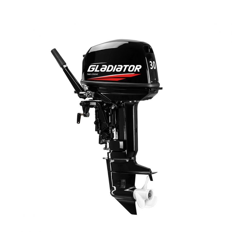 Gladiator G30 FHS имеет 2 тактную конструкцию, что делает их надежными, а обслуживание и ремонт простым. Так же эти моторы имею невысокие требования к качеству топлива. Управление осуществляется с румпеля, есть три передачи (вперед, назад и нейтраль) для удобного маневрирования. Электронная система зажигания CDI гарантирует запуск в любых условиях. В базовое оснащение этой модели входит все необходимое для безопасного и комфортного плавания не только на мелководье, но и на отдаленных от берега участках.