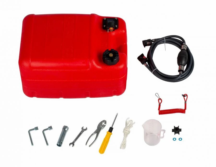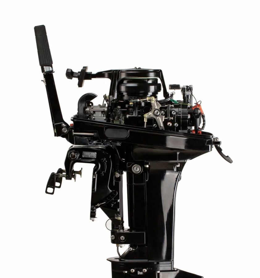 Gladiator G9.9FHS PRO особо популярен среди тех, кто хочет управлять мощным двигателем и не регистрировать его в ГИМС. Внешний топливный бак, объемом 24 литра, позволит ходить на средние и дальние береговые дистанции. Мотор запускается ручным стартером, а управляется стандартным румпелем с поворотной ручкой газа (гашеткой мотоциклетного типа) с анти-проскальзывающими насечками. На ручном стартере предусмотрена блокировка, не позволяющая запускать мотор при включенной передаче (запуск возможен только на нейтрали). Переключение передач осуществляется рычагом в передней части мотора. положений у рычага три - вперед, нейтраль, назад. Кнопка остановки двигателя находится на румпеле, она снабжена предохранительной чекой экстренного выключения. Мотор прост в использовании, обладает отличной мощностью и надежностью.