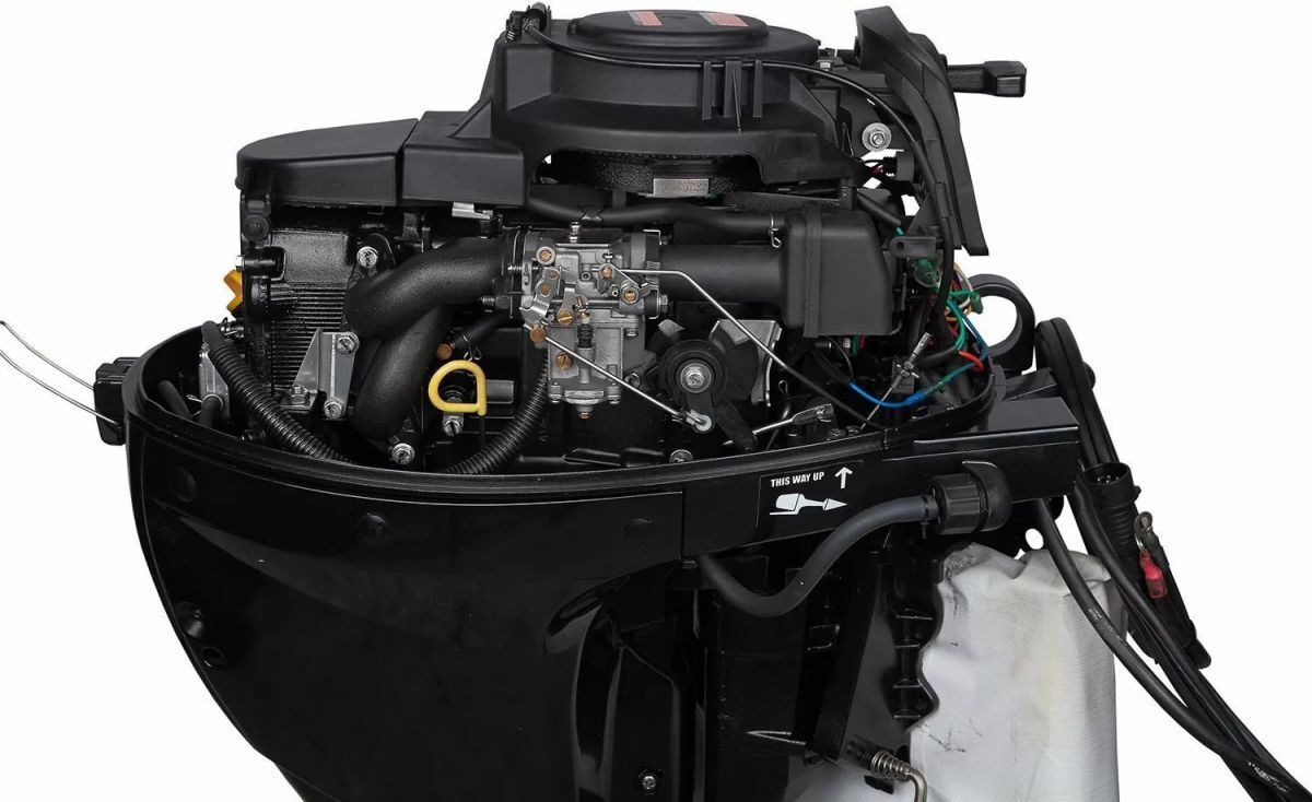 MP 40 AERTL: Лодочный мотор Marlin Outboards, двухтактный, 40 лошадиных сил, электрический запуск двигателя, дистанционное управление, гидропривод, длинная нога (дейдвуд).