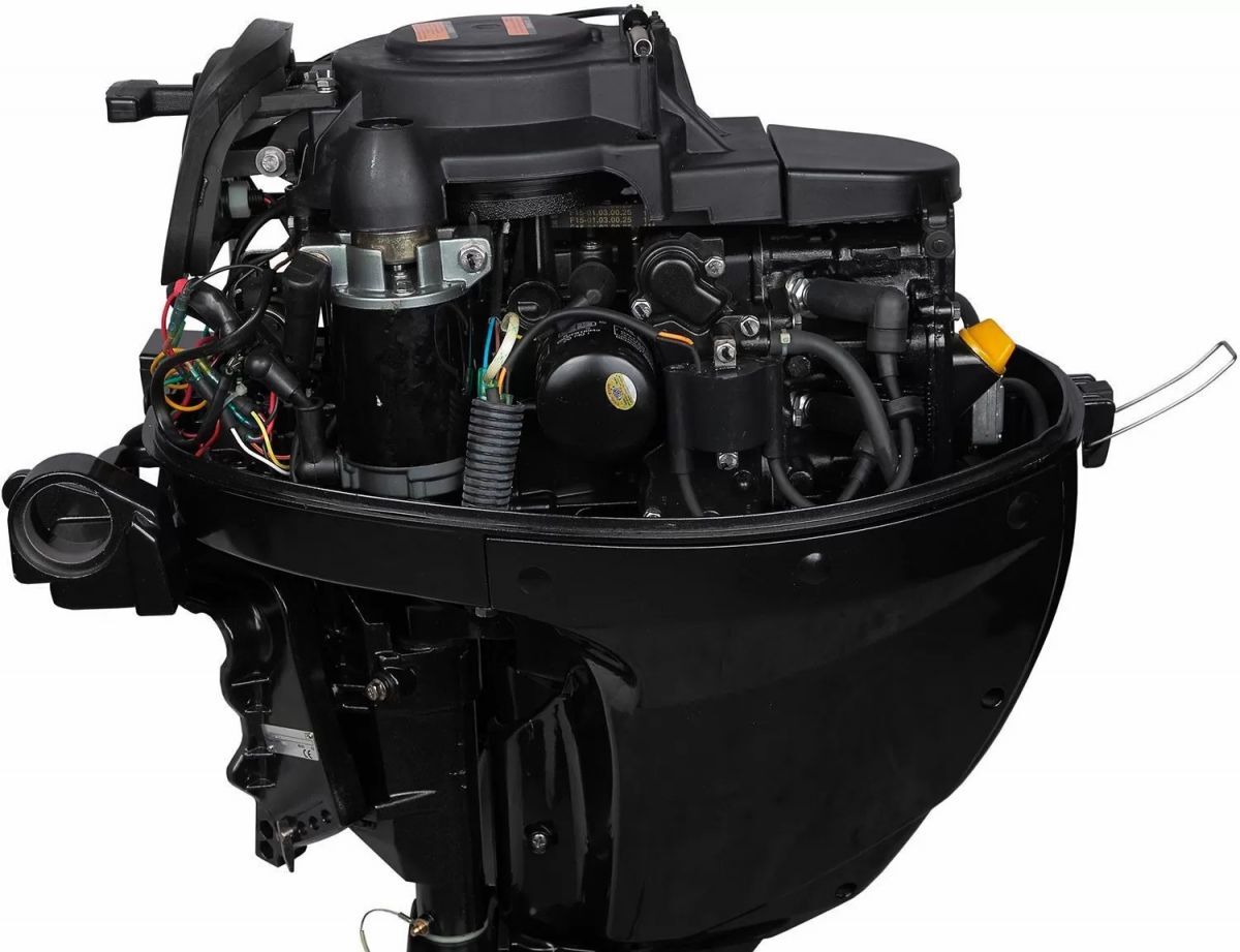 MF 15 AWHS: Лодочный мотор Marlin Outboards, четырехтактный, 15 лошадиных сил, комбинированный (ручной запуск + электрический запуск) запуск двигателя, румпельное управление, короткая нога (дейдвуд).
