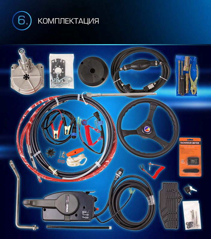 Подзарядка электронных устройств доступна прямо от работающего мотора. Мотор оснащен полным «электропакетом», включая в себя: