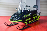 Миниснегоход Бурлак АЗИМУТ-2, 27 л.с.Лучшее предложение!«Бурлак Азимут-2» - вторая версия флагманской новинки «Бурлак Азимут», которая взорвала рынок благодаря привлекательному внешнему виду, уникальной комплектации в своем сегменте и при этом демократичной цене.По сравнению с первой версией, «Азимут-2» доступен в комплектации с двигателем мощностью 27 л.с., приборная панель дополнена спидометром, а для удобства управления на руле установлены зеркала заднего вида.В комплектацию входят:- двигатель 20, 24 или 27 л.с. с передним расположением,- гусеница LONG шириной 500 мм,- катковая подвеска,- вариатор "Сафари",- электричский запуск,- гидравлический тормоз,- реверс,- 2 металлические опорно-поворотные лыжи,- спидометр,- зеркала заднего вида.ВНИМАНИЕ! АКБ в комплект поставки не входит. Модель выпускается в двух комплектациях. До 14.09.2021 Егерь шел с металлическим кожухом двигателя и съемным багажником, с 14.09.2021 на модель устанавливается модернизировнный пластиковый кожух без возможности установки дополнительного багажника.Длина, мм - 2900Ширина, мм - 1110Высота, мм - 1280Сухая масса, кг - 234Гусеница, мм - 3333*500Привод - переднийЭлектрозапуск - естьТормоз - гидравлическийДвигатель - Lifan / Loncin 20 /24 /27 л.с. 4х- тактныйПодвеска - каткиТрансмиссия - Вариатор, передача вперед, реверс, нейтральВид топлива - Бензин АИ-95 или АИ-92Максимальный расход топлива, л/ч - 3.75 / 4.25 / 4.625Максимальная скорость - 40 км/ч