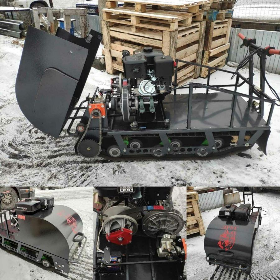 Мотособака весит 87 кг, а размер ее составляет 140 см в длину, 63 см в ширину и 76 см в высоту. Модель оснащена гусеницей шириной 260 мм. Гусеница в сочетании с катковой подвеской способна проходить спокойно по льду и даже по территории без снега.
