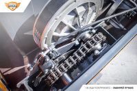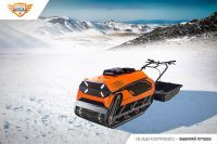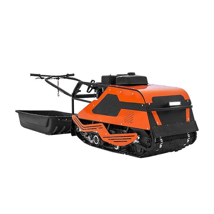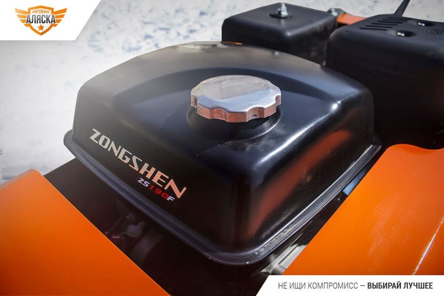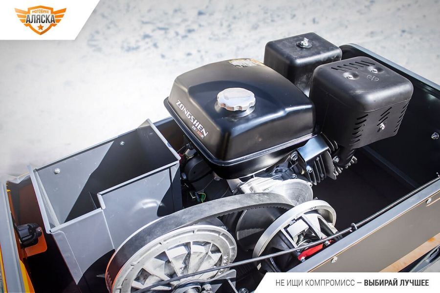 Буксировщик оснащен 4-х тактным двигателем Zongshen мощностью 15 л. с., достигающий скорость до 25 км/ч. Это позволяет быстро перевозить груз до 290 кг в санях и на специальной багажной площадке мотобуксировщика. Объем двигателя составляет 420 кубов.