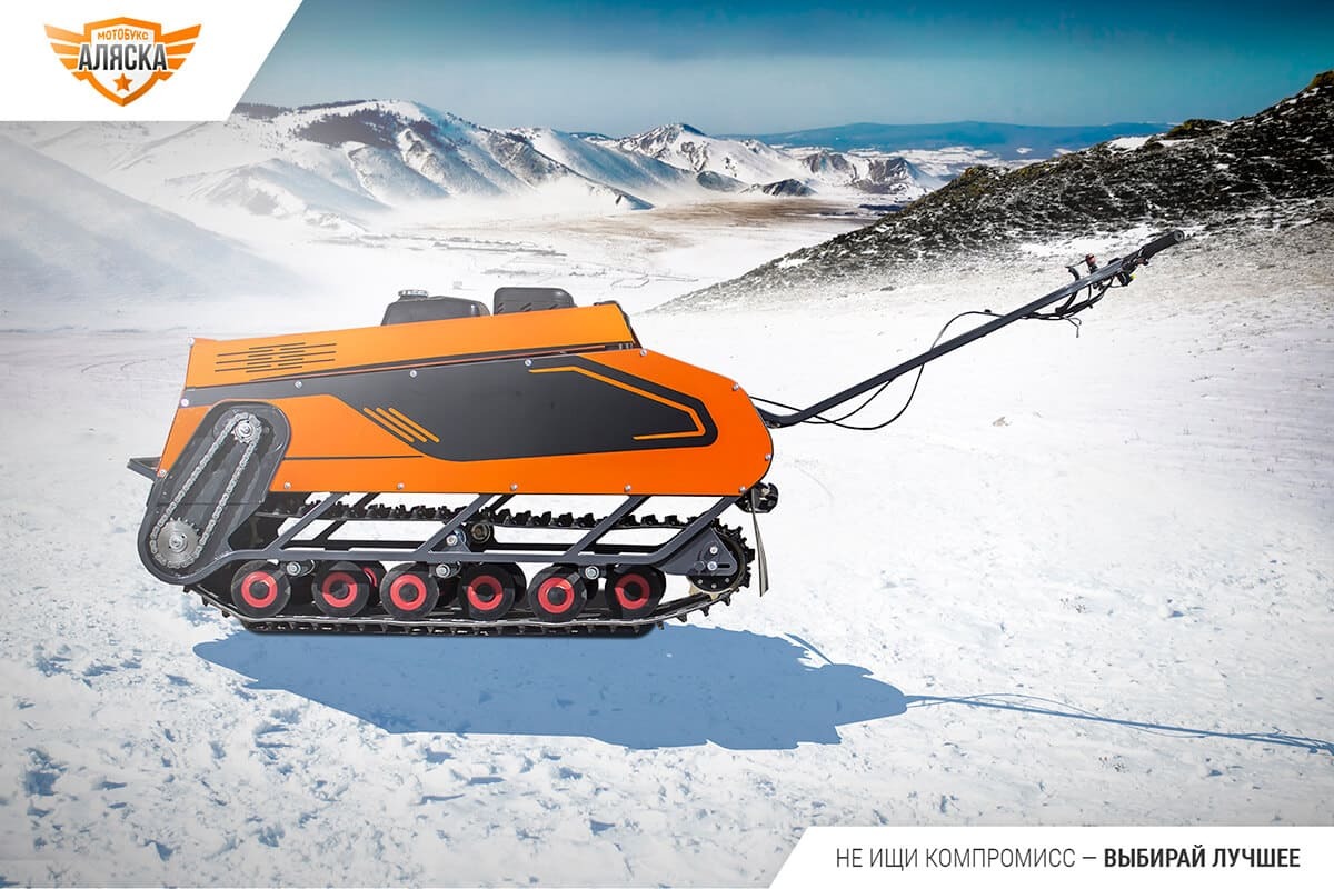 Мотособака имеет усиленную рамную конструкцию из гнутого профиля и стальной окрашенный кузов, нанесенный на заводе. Производитель также предусмотрел защиту приводной цепи и деталей подвески, дисковый тормоз с функцией парковки, магнето-генератор для электрооборудования и зарядки мобильных устройств. Благодаря хорошей тяге, мягкой подвеске, а также оптимальной компоновке узлов и угла атаки гусеницы, мотобукс обеспечивает комфортное движение по бездорожью.
