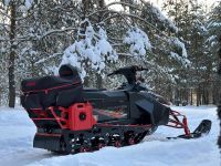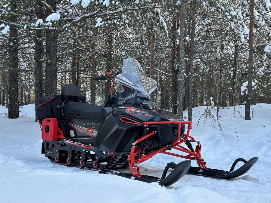 Снегоход IKUDZO HUNTER 650LK 28 EXPERT V2• Двигатель: 28 л.с. 4х тактный (c модернизированной топливной системой и изменением конструкуии ограничителя) LIFAN KP500E• Стартер: Ручной + электро (АКБ в комплекте не идет)• Подвеска: Уникальная катковая IKUDZO• Трансмиссия: Усиленный Вариатор IKUDZO (нагрузка до 750кг)• Вид топлива: Бензин АИ-95 или АИ-92• Бак: 18 л.• Максимальная скорость, км/ч: 70• Фара головного света (LED), Вт 38• Габаритные размеры и масса•Длина максимальная от лыжи до бампера: 3000 мм•Длина от переднего бампера до заднего бампера: 2600 мм•Ширина по лыжам: 1100 мм•Высота по рулю: 1230 мм•Высота по седлу: 860 мм• Ширина гусеницы, мм 500Длина гусеницы, мм 3333Высота грунтозацепа, см 23см• Масса (нетто), кг 190• Масса перевозимого груза, кг в снегоходе - не более 200 кг, на сцепке, в трех санях – волокушах – 600 кг (по 200 в каждой).• Цепь: Усиленная SFR• Звезды: Самосчищающиея SFR• Подшипники: Усиленные, Японские• Подогрев ручек в комплекте• Реверс-редуктор IKUDZO в комплекте• Панель управления в комплектеВ комплекте:- Кофр IKUDZO ПРЕМИУМ- Канистры 5л.с EXTREEM с креплением- Расширители лыж IKUDZO
